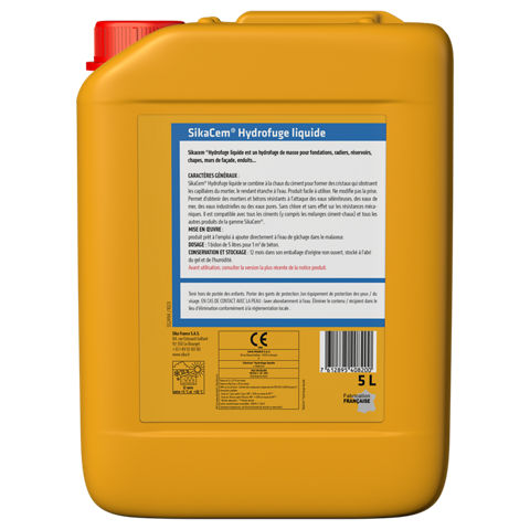 SikaCem® Hydrofuge liquide est un hydrofuge de masse liquide pour béton et mortier.
