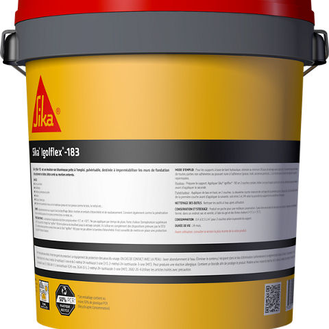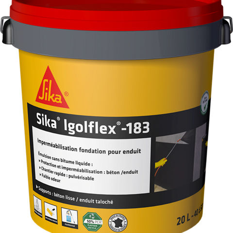Sika® Igolflex®-183 est une émulsion non bitumineuse prête à l’emploi, pulvérisable, utilisé en complément d'imperméabilisation en association à la nappe Sika® Protection Fondation.
