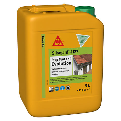 Sikagard®-1127 Stop Tout en Un Evolution est formulé à base d'enzyme, ingrédient d'origine naturelle. Les enzymes nettoient en profondeur et protègent les surfaces contre la croissance des traces vertes, rouges et certaines traces noires (hors pollution).