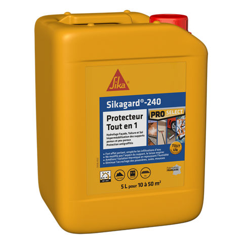 - Sikagard®-240 Protecteur TOUT en 1 est un produit d’imprégnation destiné à protéger tous les supports minéraux poreux ou peu poreux contre la pénétration des liquides à base d’eau et d’huiles. Il prévient ou réduit significativement les taches et l’encrassement des matériaux.