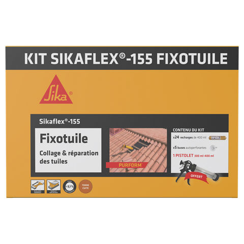 Le Sikaflex®-155 Fixotuile® Purform® est un mastic-colle mono composant à base de polyuréthane, spécialement adapté au collage souple des tuiles à l’extérieur.
