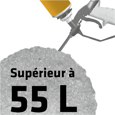 La quantité de mousse expansive extrudée peut être réglée en exerçant plus ou moins de pression sur la gâchette ou en serrant ou desserrant la vis du pistolet d’application.