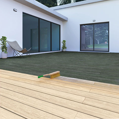 - Sous forme de gel, il peut s’appliquer facilement sur support vertical tel que bardages, panneaux de clôture, ou au sol pour des lames de terrasse par exemple.