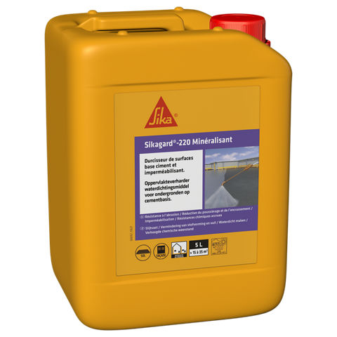 - Sikagard®-220 Minéralisant apporte une résistance chimique accrue et une meilleure protection contre les graisses, huiles, acides organiques et bases dilués.