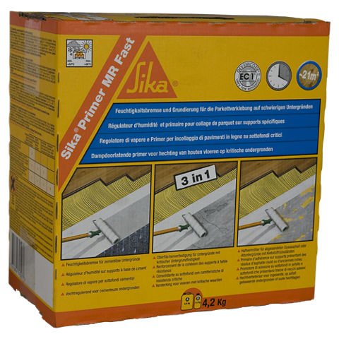 Sika® Primer MR Fast est un primaire époxy bi composants à très faibles émissions et effet barrière contre l'humidité du sol pour les colles à parquets SikaBond® .