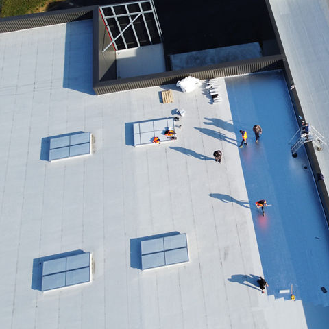 SikaRoof® Fire Screen est un écran de protection rapporté par auto-adhésivité sur les membranes d’étanchéité synthétiques Sikaplan® en polychlorure de vinyle (PVC) ou Sarnafil® T en alliage de polyoléfines flexibles (FPO).
